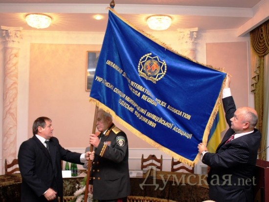 В помещении административного здания Главного управления МВД Украины в Одесской области состоялось торжественное собрание с участием представителей украинской секции Международной полицейской ассоциации, которую возглавляет ее президент — генерал внутренней службы Андрей Василишин, сообщает пресс-служба ГУ МВД. Визит почетных гостей к одесским правоохранителям был связан с их общественной деятельностью — состоялось открытие Одесского отделения украинской секции Международной полицейской ассоциации. Руководство Одесского отделения секции из рук генерала Андрея Василишина получило флаг ассоциации, став полноправным ее представителем на Одесчине.