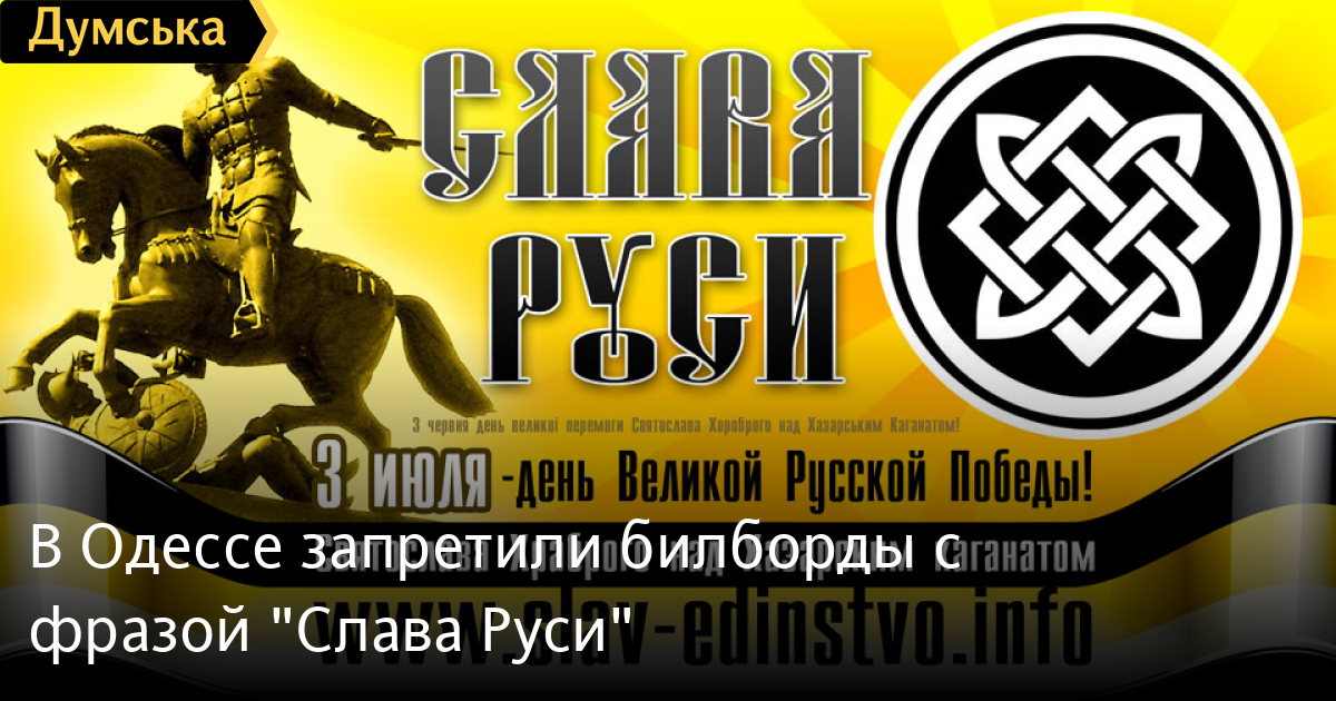 Бюро эстетики городской среды Одесского горсовета запретило общественной организации «Славянское единство» устанавливать в центре города билборды в честь годовщины победы князя Святослава Храброго над Хазарским Каганатом, сообщает пресс-служба «Славянского единства».