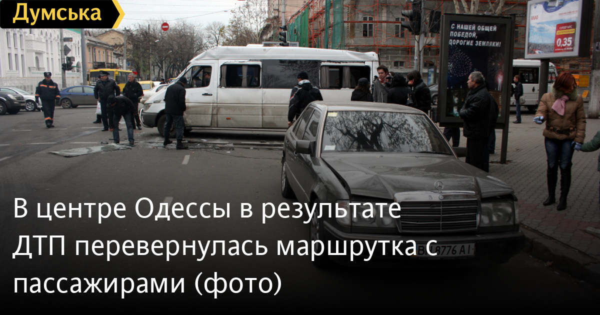 Пассажирский микроавтобус № 316 «Одесса-Херсон», ехавший на красный свет, на углу улиц Ришельевской и Большой Арнаутской на большой скорости столкнулся с маршруткой №221, после чего перевернулся.