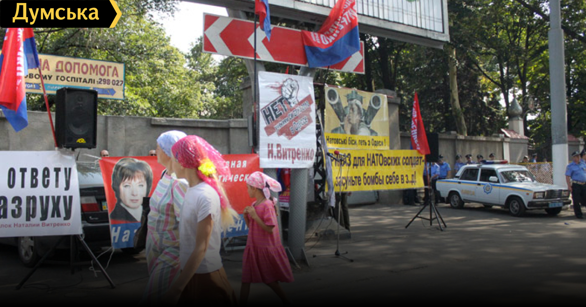 Сторонники Натальи Витренко и активисты общественной организации «Евреи против Гурвиц» снова пикетируют одесский гарнизонный Дом офицеров, где проходит итоговая пресс-конференция, посвященная завершению международных военных учений «Си Бриз-2010».