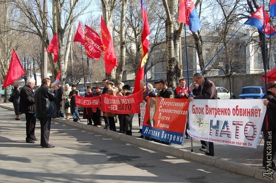 Около 40 человек пикетируют в эти минуты здание Южного оперативного командования. Это представители ПСПУ, КПУ, партии Киевская Русь, и областной организации Союза Советских офицеров. Акция приурочена к 60-летию образования НАТО, которое отмечается сегодня. Пикетчики информируют об агрессивной политике Северо-атлантического альянса, которая, как говорят выступающие, пытается оторвать от России другие страны СНГ. Также представители левых сил требуют запретить проведение учений Си-Бриз в Одесском регионе. ![]() Здесь же установлена палатка блока Витренко, в которой раздают газеты. Организаторы пикета подготовили обращение к руководству Южного оперативного командования. СМЕРТЬ РОСІЙСЬКИМ ОКУПАНТАМ! ![]() ![]() Помітили помилку? Виділяйте слова з помилкою та натискайте control-enter |