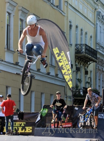 Сказочные существа — смурфы – появилось в субботу возле памятника Дюку в рамках второго Одесского международного кинофестиваля. А рядом проходили соревнования в рамках второго городского Стрит-джема по уличной культуре, организованного Одесским спортивным клубом по уличным танцам «Rising Stars» совместно с компанией Action Sport Marketing. Среди же ярких домиков и зеленой травы одесситов встретила сотня смурфов. Дети здесь могут поиграть со сказочными существами, посетить разнообразные мастер-классы, принять участие в веселых конкурсах и выиграть сказочные призы.