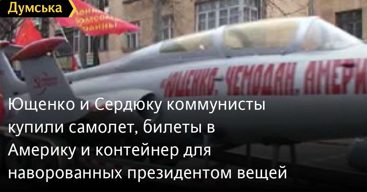 Ющенко и Сердюку коммунисты купили самолет, билеты в Америку и контейнер для наворованных президентом вещейСегодня одесские коммунисты начали проведение всеукраинской акции «Ющенко, чемодан, Америка». Такой лозунг написан на самолете, который коммунисты купили для доставки президента и одесского губернатора Николая Сердюка в США, а так же на баннере сцены, которая была установлена возле здания облгосадминистрации. Митингующие собрались на Куликовом поле, туда же был привезен купленный у Минобороны военный самолет. Процессия прошла к зданию обладминистрации, где и планировалось разместить самолет, который на жесткой сцепке транспортировал внедорожник. Однако милиция не пустила самолет на площадь возле обладминистрации, и он остался стоять на проспекте Шевченко. По дороге от Куликова поля участники митинга просили одесситов скинуться по 5 копеек на самолет и билеты для президента и губернатора. ![]() Народный депутат Украины Евгений Царьков сообщил журналистам, что два билета уже куплены в компании «Аэросвит» на рейс Одесса – Киев — Вашингтон, вылет завтра в 19 часов. Билет Николаю Сердюку передали официально через канцелярию. Так же коммунисты сегодня отправили с почтамта телеграмму в конгресс США с просьбой трудоустроить Катерину Ющенко, так как она там уже работала. А для Виктора Ющенко найдут какую-нибудь всенародную пасеку. Одесскому губернатору предлагают запатентовать в Америке свою идею отопления домов с помощью соломы, которую он недавно выдвинул, чтобы он там отапливал соломой дом Буша или ранчо Обамы. Евгений Царьков сказал, что, если Ющенко и Сердюк не воспользуются самолетом, то он будет перевозиться из города в город и в конце-концов прибудет в Киев. Так же коммунисты собирают средства на контейнер для имущества президента, которое он успел присвоить. Контейнер будет вскоре выставлен в Киеве перед резиденцией президента. СМЕРТЬ РОСІЙСЬКИМ ОКУПАНТАМ! ![]() ![]() Помітили помилку? Виділяйте слова з помилкою та натискайте control-enter