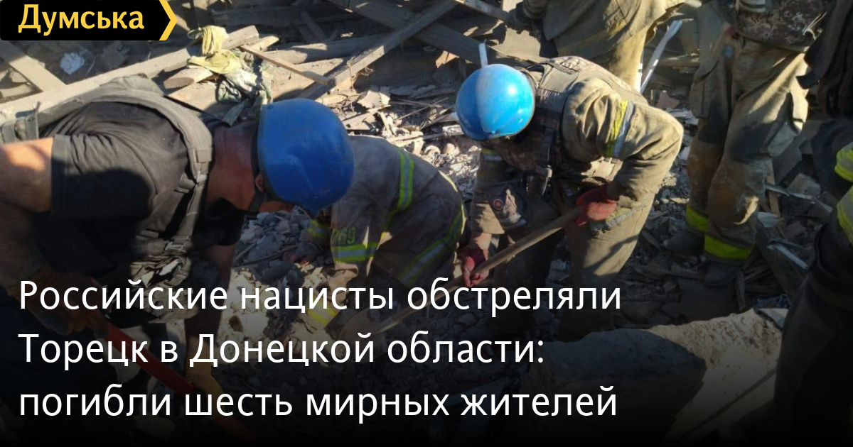 Російські нацисти обстріляли Торецьк в Донецькій області: загинуло шестеро мирних жителівВнаслідок російського обстрілу Торецька Донецької області загинуло шість мирних українців. Як повідомляє Державна служба з надзвичайних ситуацій, рятувальники вже закінчили розбирати завали, під якими знайшли тіла п'ятьох місцевих жителів, одна людина померла вже у лікарні. «Від самого ранку місто Торецьк зазнало обстрілу, внаслідок влучення снаряда зруйнована двоповерхова будівля, в якій перебували люди. Під час проведення пошуково-рятувальних робіт співробітниками Служби порятунку було виявлено та вилучено тіла п'яти загиблих осіб, врятовано з під завалу три особи, одна з яких померла в лікарні», — повідомили рятувальники. СМЕРТЬ РОСІЙСЬКИМ ОКУПАНТАМ! Помітили помилку? Виділяйте слова з помилкою та натискайте control-enter |