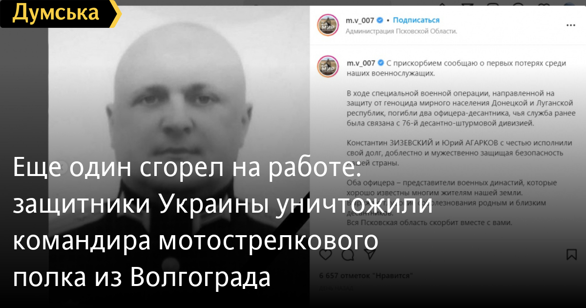 На этот раз задвухсотился командир 33-го мотострелкового полка, бывший начальник штаба 56-й отдельной десантно-штурмовой бригады РФ гвардии подполковник Юрий Агарков.