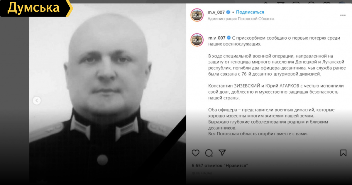 Еще один сгорел на работе: защитники Украины уничтожили командира мотострелкового полка из ВолгоградаЕще одного высокопоставленного российского офицера ликвидировали вчера наши защитники. На этот раз задвухсотился командир 33-го мотострелкового полка, бывший начальник штаба 56-й отдельной десантно-штурмовой бригады РФ гвардии подполковник Юрий Агарков. Как следует из некрологов, которые уже расходятся по российских ресурсам, Агарков был в Украине не один, а со всем своим 33-м полком, и умер отнюдь не от коронавируса. Полк тоже понес тяжелые потери. По данным разведки, с начала агрессии в Украине погибло не менее шести старших офицеров, от командира полка и до заместителя командующего 41-й российской армии. СМЕРТЬ РОСІЙСЬКИМ ОКУПАНТАМ! Помітили помилку? Виділяйте слова з помилкою та натискайте control-enter |