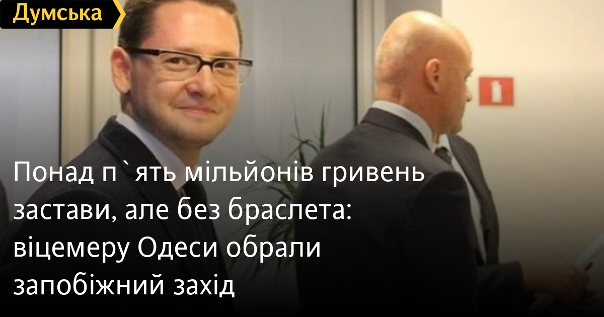 Понад п`ять мільйонів гривень застави, але без браслета: віцемеру Одеси обрали запобіжний захід👍 228 🤬 55 💩 21 ❤ 10 😁 7 👎 2 😱 2 Заставу 5 368 000 гривень призначили як запобіжний захід одному із заступників Геннадія Труханова. Колегія суддів Вищого антикорупційного суду частково задовольнила клопотання прокурора САП, повідомили у ВАКС. За даними «Думської», йдеться про Павла Вугельмана, який фігурує у «справі Краяна». Застава має бути внесена не пізніше ніж за 5 днів із дня її застосування. Тоді чиновник буде зобов'язаний прибувати на кожну вимогу до суду, не відлучатися за межі території України без дозволу суду, повідомляти суд про зміну свого місця проживання та роботи, утримуватися від спілкування з особами, визначеними в ухвалі суду, а також здати на зберігання до Державної міграційної служби України свій паспорт для виїзду за кордон, інші документи, які дають право на виїзд з України та в'їзд в Україну. Термін дії обов'язків — до 27 червня 2023 року включно. Зазначимо, раніше до обвинуваченого було застосовано запобіжний захід у вигляді особистої поруки. Нагадаємо, напередодні суд змінив запобіжний захід і його патрону — меру Одеси Геннадію Труханову. Тому призначили заставу в 30 мільйонів і зобов'язали носити електронний браслет. Труханова і його спільників обвинувачують у продажі місту адмінбудівлі колишнього заводу «Краян» за завідомо завищеною ціною. У результаті, за даними слідства, громада зазнала збитків у розмірі 92 млн грн. Надалі ці кошти, ймовірно, планували легалізувати через підприємство з ознаками фіктивності, засновник і керівник якого, стверджує НАБУ, проживає на тимчасово окупованій території Луганської області. Суд першої інстанції виніс у справі виправдувальний вирок, однак САП оскаржила це рішення в апеляції. СМЕРТЬ РОСІЙСЬКИМ ОКУПАНТАМ! Помітили помилку? Виділяйте слова з помилкою та натискайте control-enter