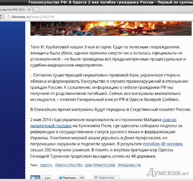 Российский телеканал LifeNews продолжает генерировать все новые и новые версии того, что происходило в Одессе 2 мая 2014 года.