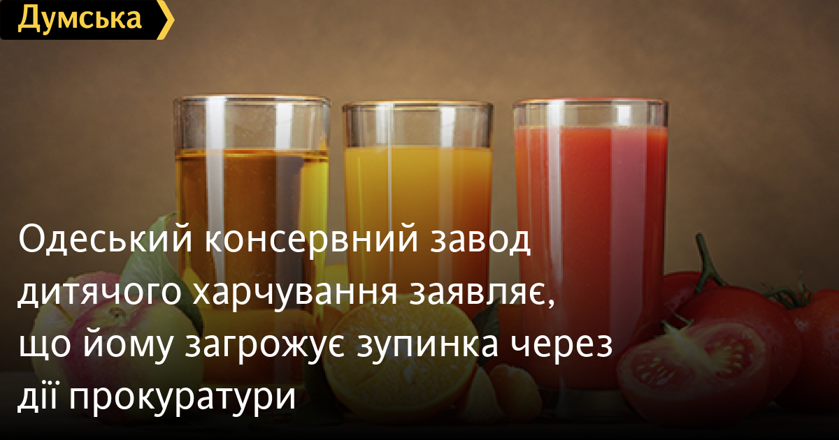 Малиновська окружна прокуратура Одеси відкрила кримінальне провадження щодо порушення правил користування водними ресурсами Одеським консервним заводом дитячого харчування. Завод, у свою чергу, називає дії прокуратури незаконними і заявляє, що судовий позов загрожує зупинкою підприємства.