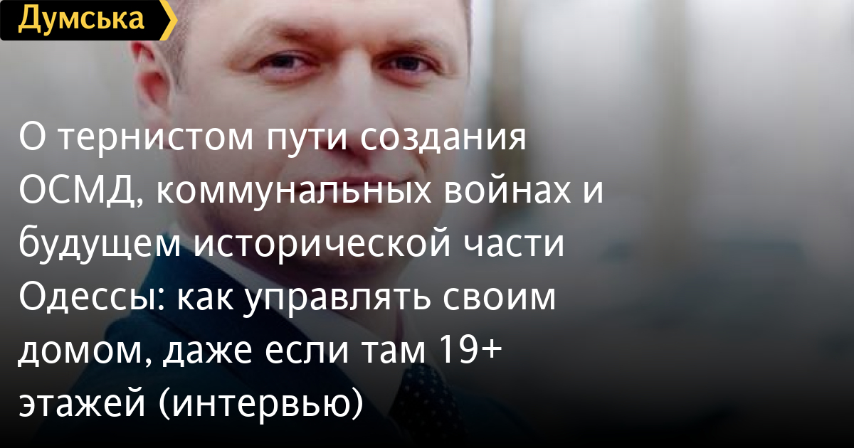 «Д». Поговорим о переделе рынка управляющих компаний в Одессе. Его еще называют коммунальными войнами между старыми добрыми ЖКСами и управляющими компаниями. Можно ли утверждать, что возрождение ОСМД связано и с этими качелями?