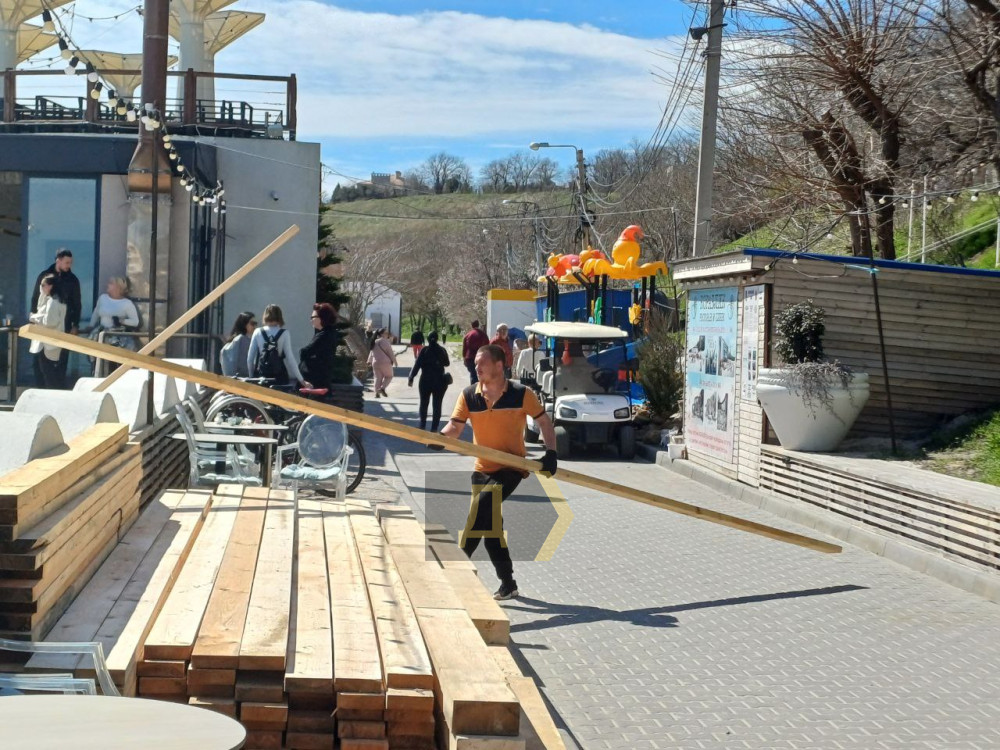 При цьому чимало закладів залишаються в анабіозі, особливо ті, які розміщуються безпосередньо на піску. Деякі з них являють собою купи дощок та інших матеріалів, яким тільки належить перетворитися на об'єкти рекреації. Втім, для початку квітня в Одесі це цілком звична картина — сезон стартує не раніше початку травня, а на пік виходить тільки до другої половини червня. А якщо врахувати, що досі жодної офіційної інформації про те, чи відкриють пляжі, немає, то боязкий стукіт молотків і ревіння дрилів уже можна відзначити як сміливу ініціативу.