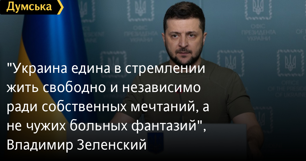«Украина едина в стремлении жить свободно, жить независимо и ради собственных мечтаний, а не чужих больных фантазий. Каждый день нашей борьбы за Украину, каждое проявление нашего сопротивления во всех районах, куда оккупанты пока зашли, доказывают, что Украина – это полное жизни государство, имеющее исторические корни и моральное основание на всей своей территории.