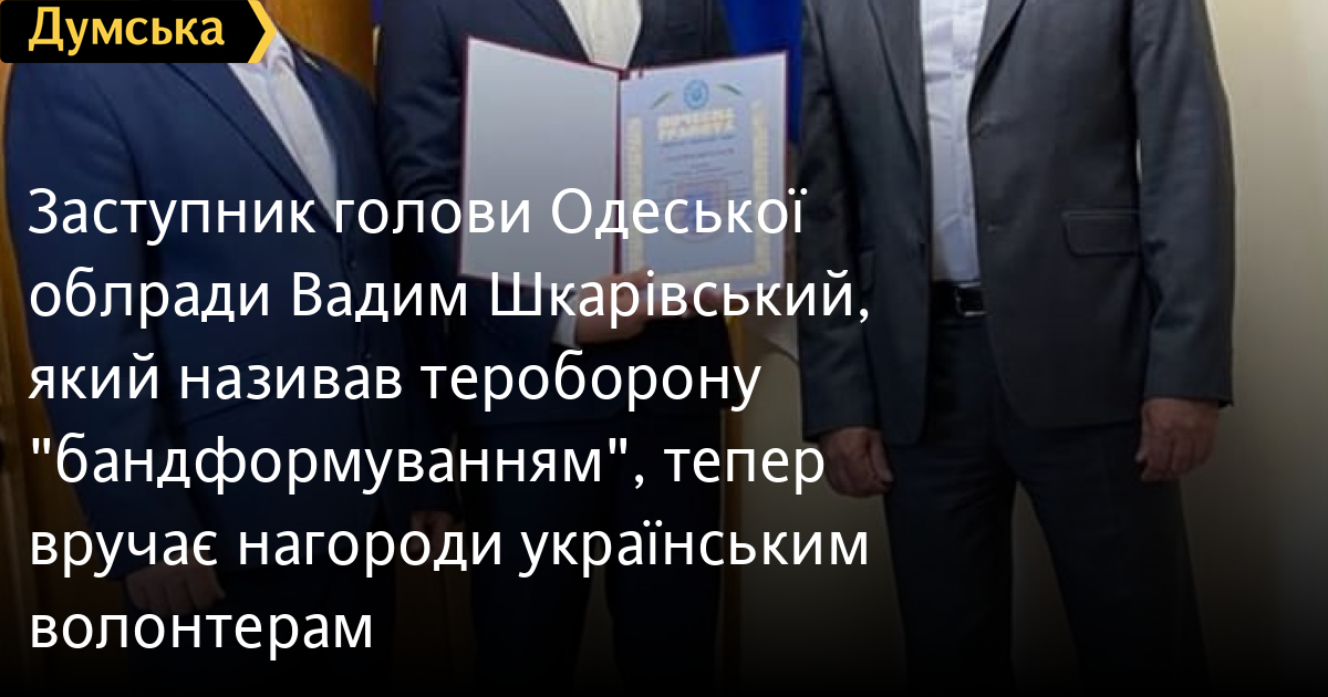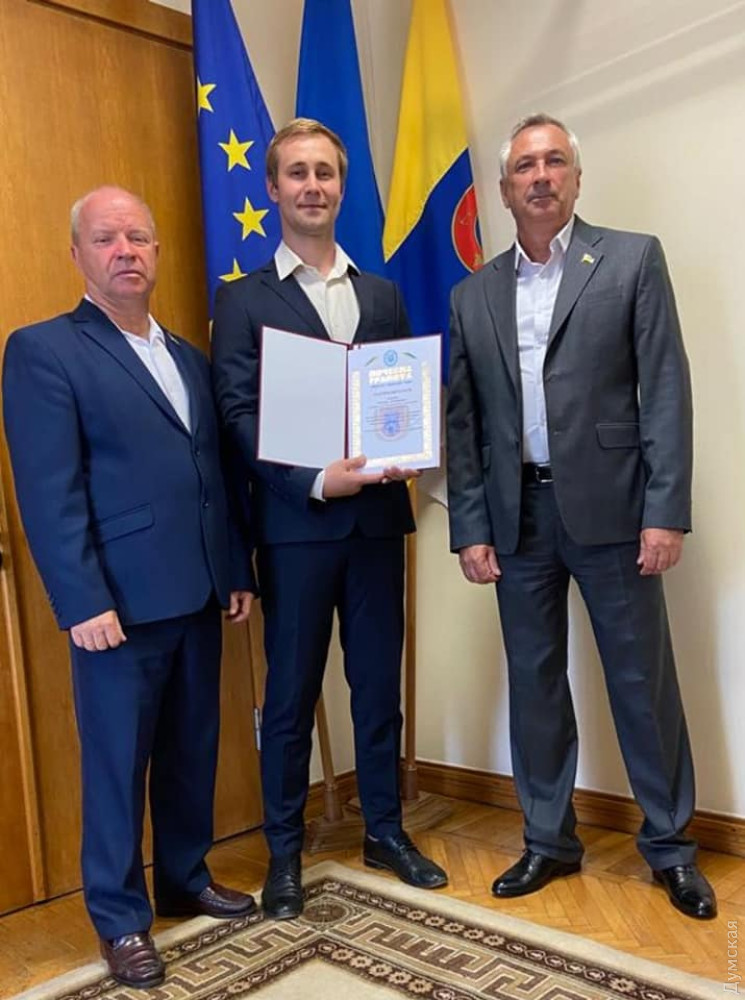 Заступник голови Одеської обласної ради, депутат від забороненої проросійської партії ОПЗЖ разом із однопартійцем, депутатом облради Олексієм Кобильниковим вручили почесну грамоту одеському підприємцю та волонтеру Дмитру Сахарову.