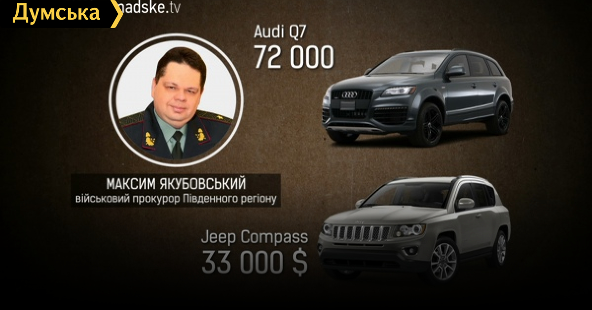 «Стоимость Аudi Q7, по словам менеджера салона, который продал прокурору машину, начинается от 72 тысяч евро за базовую комплектацию. А у прокурора она - не базовая. Кроме Аudi, в Киеве его ждет внедорожник Jeep Compass 2012 года за 33 тысячи долларов. То есть, только личный прокурорский автопарк тянет далеко за сто тысяч долларов», — говорится в сюжете.