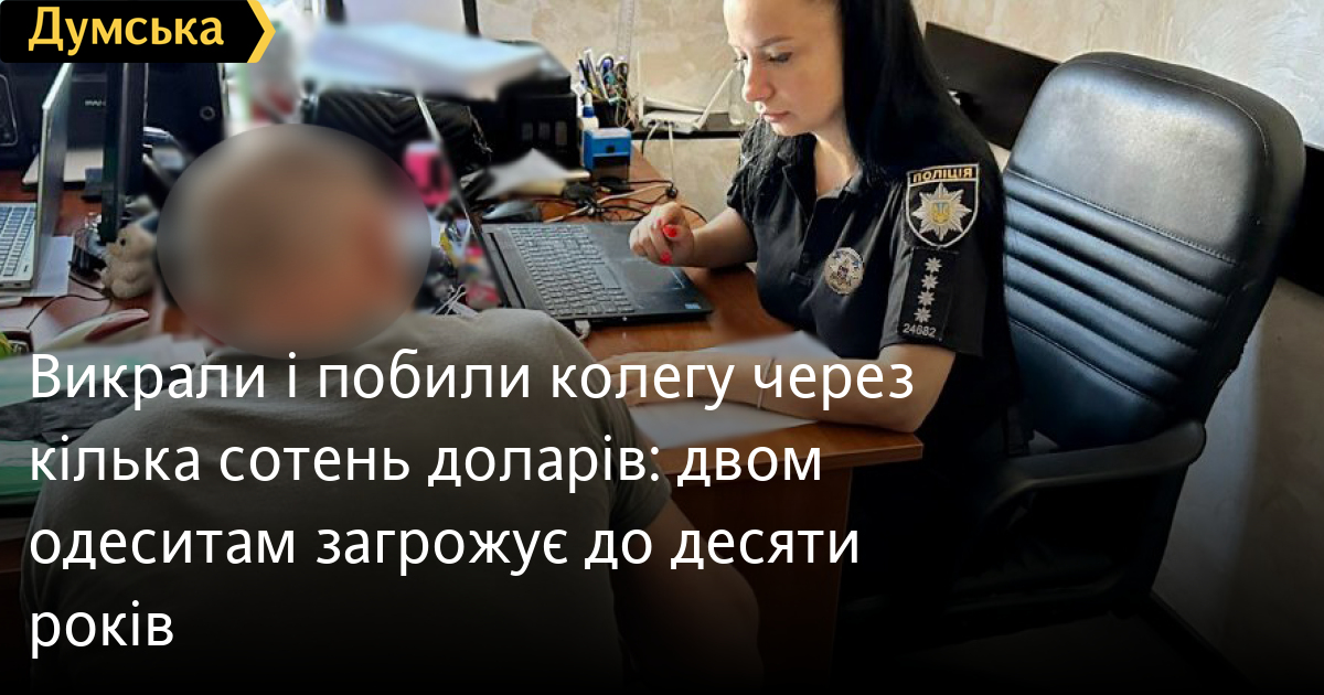 Викрали і побили колегу через кілька сотень доларів: двом одеситам загрожує до десяти роківДо десяти років позбавлення волі загрожує двом жителям Одеси, які викрали та побили свого колегу, бо запідозрили в крадіжці. Як повідомили у пресслужбі поліції області, усі троє працювали на автобазі. Коли у 58-річного чоловіка зникли кілька сотень доларів, він запідозрив 25-річного колегу, але в поліцію не пішов. Натомість, через кілька місяців, разом з іншим 33-річним товаришем він вирішив вибити зізнання у «злодія». Вони запросили молодого чоловіка випити і призначили зустріч біля магазину на Хутірській вулиці. Потім одесити заштовхали хлопця в машину, відвезли у квартиру до старшого з них, прив'язали мотузкою до батареї і почали бити, вимагаючи зізнання. Під ранок, коли вони заснули, бранець розв'язав мотузку і вистрибнув із вікна квартири на третьому поверсі. На вулиці він попросив допомоги в перехожих, які викликали йому швидку. Поліцейські затримали зловмисників і повідомили їм про підозру у викраденні людини (ч. 2 ст. 146 ККУ). Помітили помилку? Виділяйте слова з помилкою та натискайте control-enter Новини по цій темі: 29 липня 2025: В Усатово Одеської області сталася перестрілка: поліція працює на місці (відео, оновлено) 28 липня 2025: П'яний на "Ягуарі" або гіпертонік? Звільнений топ-посадовець одеської поліції хоче повернутися на службу 19 червня 2025: Дівчинку, яку шукали сотні одеситів, знайшли вбитою: поліція працює з чоловіком, ймовірно причетним до загибелі 27 травня 2025: Увели гектар в університету: на Одещині засудили земельних аферистів, але без посадки і Хвоста |