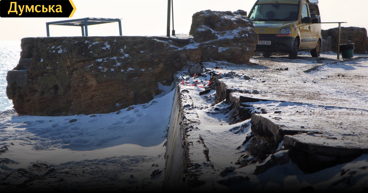 Как стало известно редакции «Думской», в районе 11-й станции Большого Фонтана начато строительство второй торговой площадки дельца. Здесь снесли бетонное ограждение на подпорной стенке, а на песке — следы от строительной техники. Судя по всему, работам помешал внезапный снегопад, обрушившийся на город. Застройщики временно бросили бетонные куски ограждения прямо на пляже.