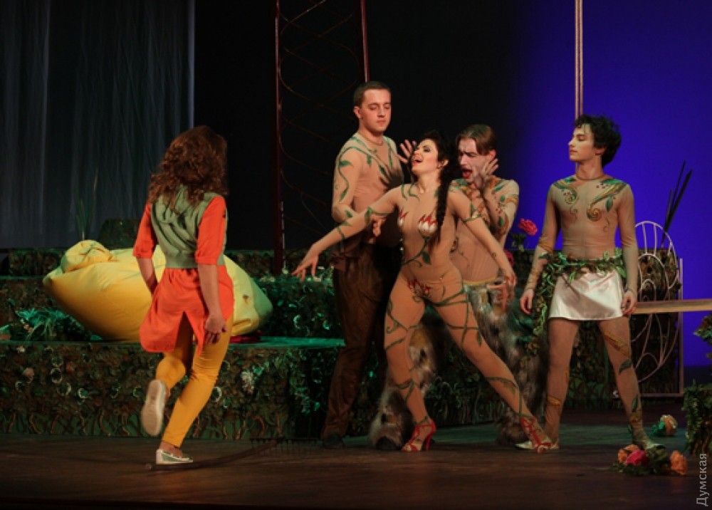 «А как насчет орального секса?..» В Одесском русском театре скрестили Шекспира с ФрейдомСвой юбилейный, 140-й сезон начал спектаклем, выпущенным под грифом «Только для взрослых» Одесский академический русский драматический театр. Жанр постановки — «Эротические фантазии от Шекспира до…», а название еще более игривое: «Sex-tet в летнюю ночь». «Думская» горячо рекомендует к просмотру. Режиссер-постановщик Елена Пушкина не так давно выпустила в театре «Уездную канитель» по Чехову (вот как вы лодку назовете, так она и поплывет, немилосердная канитель без четкой сюжетной линии, один из зрителей на театральном форуме выразился точно: «Винегрет персонажей и судеб из сборников чеховских рассказов»). Сейчас в центре внимания режиссера оказалась комедия Вильяма Шекспира «Сон в летнюю ночь», якобы «препарируемая в свете теории психоанализа Зигмунда Фрейда», как указано в пресс-релизе постановки. Что бы сказал старина Фрейд о постановке Елены Пушкиной, навсегда останется загадкой, но слово «сублимация» из его уст прозвучало бы наверняка. «Связь между шекспировским материалом и современностью – это основной ключевой момент, который в принципе еще никогда не был задействован в таком ракурсе, — комментирует свое творение режиссер. – Потому что Шекспир писал свое самое эротичное произведение «Сон в летнюю ночь» как шутку, как подарок к свадьбе своих покровителей. Но полностью разгадать эту шутку до сих пор не смог никто. И мы сегодня не берем это произведение полностью, а лишь отталкиваемся от него, используя некоторых его персонажей и его психологический посыл. Зов природы и истина природы: что есть в человеке истинное, а что есть наносное, продиктованное социумом? Мы пытаемся в этом разобраться – что же есть любовь для современного человека – со всеми шекспировскими страстями. Что такое химия и физика любви, почему на протяжении тысячелетий существует и исправно действует механизм измен и ревности? Что диктует нам нашу поведенческую ситуацию в любви – подсознание, сознание, надсознание или вообще все вместе? Наш спектакль – попытка ответа на эти вопросы». Художник Григорий Фаер создал сложную высотную конструкцию, на которую карабкаются в основном шекспировские герои, например, фактурный царь эльфов и духов Оберон (Алексей Силин) и царица фей Титания (заслуженная артистка Украины Светлана Горчинская). А внизу – банальные шток-розы и современные ребята Гоша с Верой, к которым в гости заявляются Макс, Люба, Федя и Надя. Гоша вроде как изобретатель, поэтому он устроит в финале нечто вроде спиритического сеанса, и случится нашествие эльфов. Особенно нравятся зрителям мужского пола феи в сетчатом трико и откровенные танцы, которые разучил с артистами молодой балетмейстер Сергей Ломовицкий. Вот какой текст в качестве рекламы придумали в театре для этой постановки: «Если в супружеских отношениях наступает нешуточный кризис – необходимо срочно выпустить пар. В смысле – выпустить несколько пар в одно пространство, например, в сад загородного дачного коттеджа — и понаблюдать, что начнут творить половинки этих пар, когда наступит летняя ночь под полной луной. Ведь такая ночь бывает лишь раз в году. А может быть, лишь раз в жизни. Ночь любви, страсти и волшебства, когда в воздухе разлит пьянящий аромат желания, когда из ветвей садовых деревь