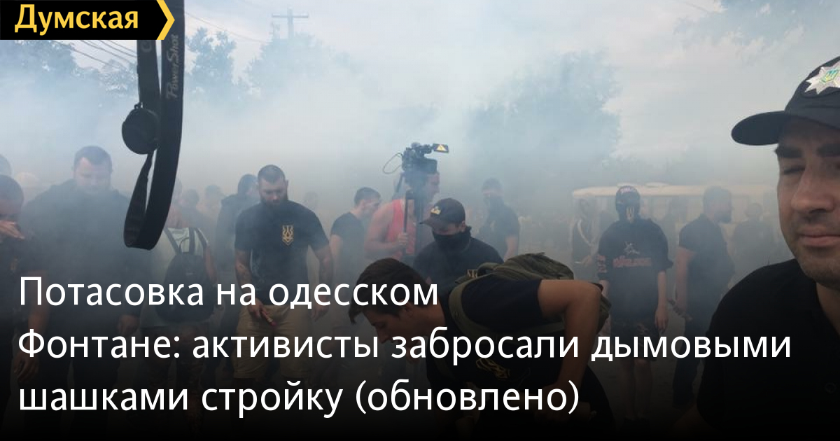 Потасовка на одесском Фонтане: активисты забросали дымовыми шашками стройку (обновлено)Масштабная потасовка произошла сегодня утром возле строящегося многоэтажного дома на Каманина. Несколько десятков активистов национального корпуса «Азов» устроили протестную акцию возле стройки. Им противостояли контрпротестующие, которые превосходили их по численности. Завязалась толкотня. В ход пошли дымовые шашки. ОБНОВЛЕНО: На место происшествия прибыли сотрудники полиции, которые прекратили хулиганские действия. В результате одного гражданина доставили в Киевский отдел полиции, в отношении него составлен протокол по ст. 173 (мелкое хулиганство) КУобАП. Сведения по данному факту внесены в Единый реестр досудебных расследований по ст. 296 (хулиганство) Уголовного кодекса Украины. Фото — Наталья Усатенко, видео Сергея Ходияка СМЕРТЬ РОССИЙСКИМ ОККУПАНТАМ! Заметили ошибку? Выделяйте слово с ошибкой и нажимайте control-enter |