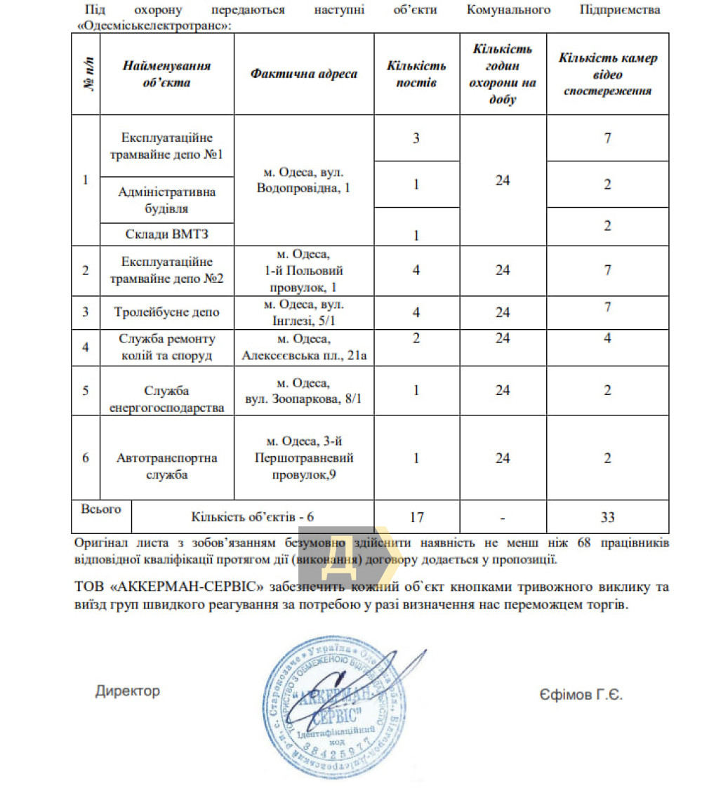 Аферы «Одесгорэлектротранса»: как экс-вице-мэр при помощи чемпиона мира деньги на охране пилил (фото, документы)Охрану имущества ряда коммунальных предприятий Одессы в течение нескольких лет обеспечивала фирма друга тогдашнего вице-мэра Дмитрия Жемана, который контролировал эти КП. Услуги при этом оказывались в куда меньшем объеме, чем было предписано договорами, что зафиксировали проверяющие уже после скандальной отставки чиновника. «Думская» продолжает исследовать запутанную экономику одесских коммунальщиков. Итак, речь идет о фирме «Аккерман-Сервіс», зарегистрированной в 2013 году в Белгороде-Днестровском. Ее бенефициар — известный одесский спортсмен, многократный чемпион мира по кикбоксингу и бывший военнослужащий Военно-морских сил (почему-то оставшийся бывшим после начала войны) Павел Журавлев. С Жеманом его связывает дружба и политические взгляды — вместе с экс-вице-мэром в 2024 году он пополнил ряды партии «Батьківщина» Юлии Тимошенко. Дмитрий Жеман и Павел Журавлев (справа) С 2019 года, когда Дмитрий Жеман стал директором муниципального департамента городского хозяйства, сохранив, компания начала регулярно выигрывать тендеры на оказание охранных услуг одесским коммунальщикам. Полоса везения прекратилась только в конце 2023-го, что удивительным образом совпало с увольнением Жемана. Впрочем, к тому времени ООО успело уже освоить немало денег. Только с «Одесгорэлектротрансом» фирма заключила пять договоров, причем расценки постоянно росли: 3,6 млн грн в 2019-м, 4,2 млн грн — в 2020-м, 7,3 млн грн — в 2021-м. Весной 2022-м «Аккерману» заказали охрану на меньшую сумму — 6,8 млн грн — видимо, сказалось начало полномасштабной войны. В декабре того же года, впрочем, тенденция возобновилась — последний договор компании с ОГЭТ был на 8,4 млн грн! С другими коммунальными предприятиями суммы были скромнее: например, КП «Городские дороги» в 2020-м заплатило «Аккерману» 1,4 млн грн, в 2021-м — 4,4 млн грн. Договоры с ЖКСами предусматривали и вовсе не миллионы, а сотни тысяч гривен. На этом рынке фирма Журавлева потеснила известную компанию «Олімп-юг» бывшего сотрудника милиции (управления по борьбе с оргпреступностью), а ныне застройщика Григория Гробова. Последнему не помогло даже приписываемое ему покровительство со стороны прокуратуры и связи в Киеве. Но, быть может, тендерные победы «Аккермана» связаны с высоким качеством оказываемых услуг при умеренной цене и тщательному следованию букве договоров? В распоряжении редакции оказались материалы проверок одесских КП, проведенных сотрудниками департамента муниципальной безопасности горсовета уже после ухода Дмитрия Жемана, в ноябре 2023 года. Так, выясняя, как выполняется договор по охране объектов «Одесгорэлектротранса» (на 8,4 млн грн), они установили, что в ней задействовано всего 15 человек, хотя ООО гарантировало, что будет не меньше 68. Территорию службы электрохозяйства на Зоопарковой вообще никто не охранял: там велись строительные работы. Автотранспортную службу в 3-м Первомайском переулке начали охранять незадолго до приезда проверяющих. В трамвайных и троллейбусных депо удостоверения «Аккермана» были у считанных охранников, большинство даже не знало названия фирмы, которая их наняла. Кроме того, подрядчик нарушил условия по установке видеокамер (в трамвайном депо №1 обнаружили лишь 4