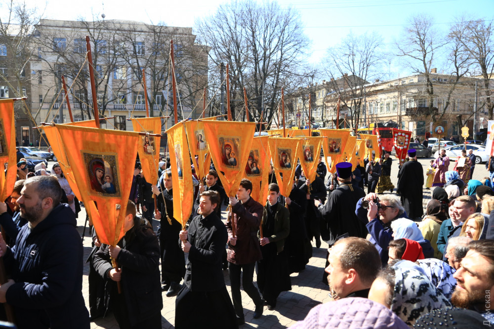 Крестный ход, посвященный празднику «Торжество православия» (первое воскресенье Великого поста), прошел сегодня в центре Одессы.