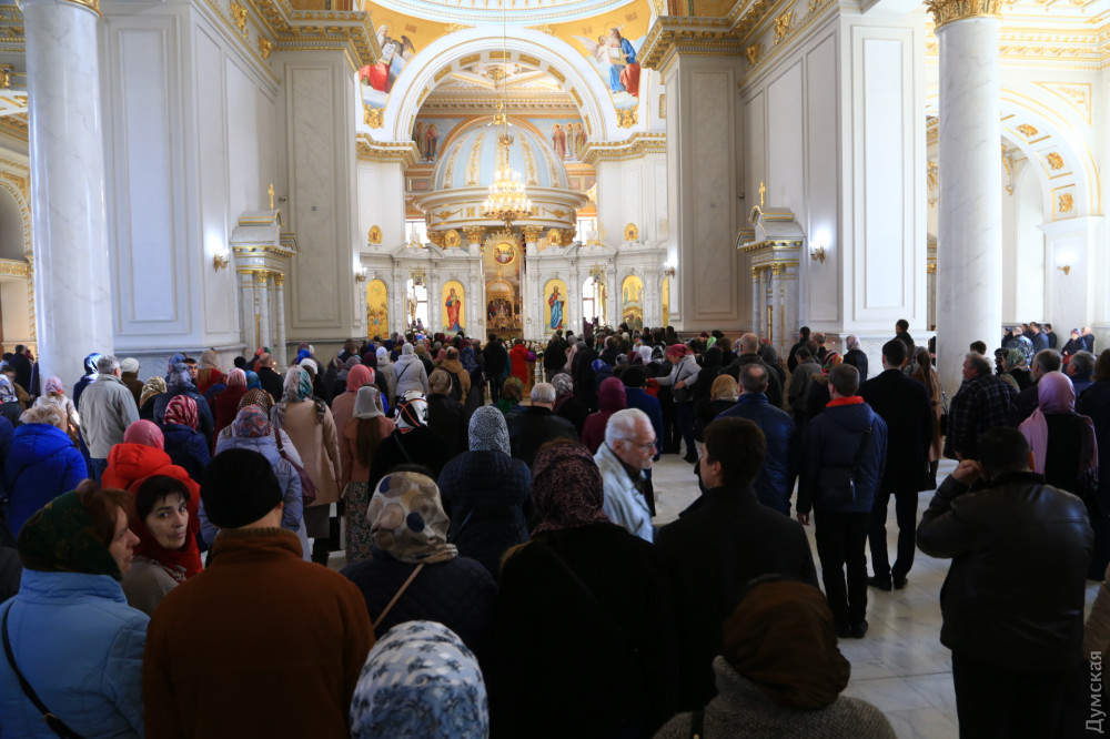 "АРХІЄРЕЙСЬКЕ БОГОСЛУЖІННЯ У НЕДІЛЮ ТОРЖЕСТВА ПРАВОСЛАВ'Я 17 березня 2019 року, в першу неділю Великого посту — Торжества Православ'я, єпископ Одеський і Балтський Павло очолив Божественну літургію свт. Василія Великого у кафедральному соборі Різдва Христового м. Одеси. Встановлення цього свята пов’язано з подіями Помісного Константинопольського собору, що був скликаний благочестивою імператрицею Феодорою для відновлення іконошанування у Візантійській імперії. На згадку про цю важливу для християнського світу подію, щорічно в першу неділю Великого посту, Православна Церква урочисто відзначає відновлення іконошанування та перемогу над усіма єресями, які існували з самого початку християнства. За богослужінням були піднесенні додаткові прохання про визволення нашої Батьківщини від нашестя чужинців та створення в Україні єдиної Помісної Православної Церкви. На запричасному проповідь виголосив протоієрей Роман Канюка. По завершенні Божественної літургії був звершений молебень неділі Торжества Православ’я. Наприкінці богослужіння єпископ Павло звернувся до усіх присутніх з архіпастирським словом. Його Преосвященству співслужили: секретар єпархії протоієрей Теодор Оробець, протоієрей Роман Канюка та клірик кафедрального собору протоієрей Андрій Волошин."