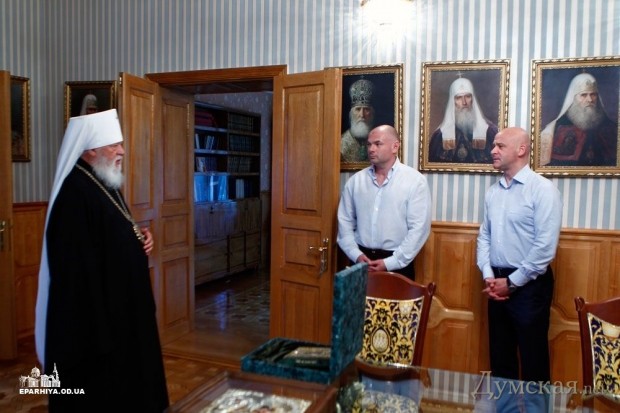 Митрополит Одесский и Измаильский Агафангел вернулся из планового отпуска и принял в своей резиденции, расположенной на территории Свято-Успенского мужского монастыря, председателя областной государственной администрации Игоря Палицу и мэра города Геннадия Труханова.