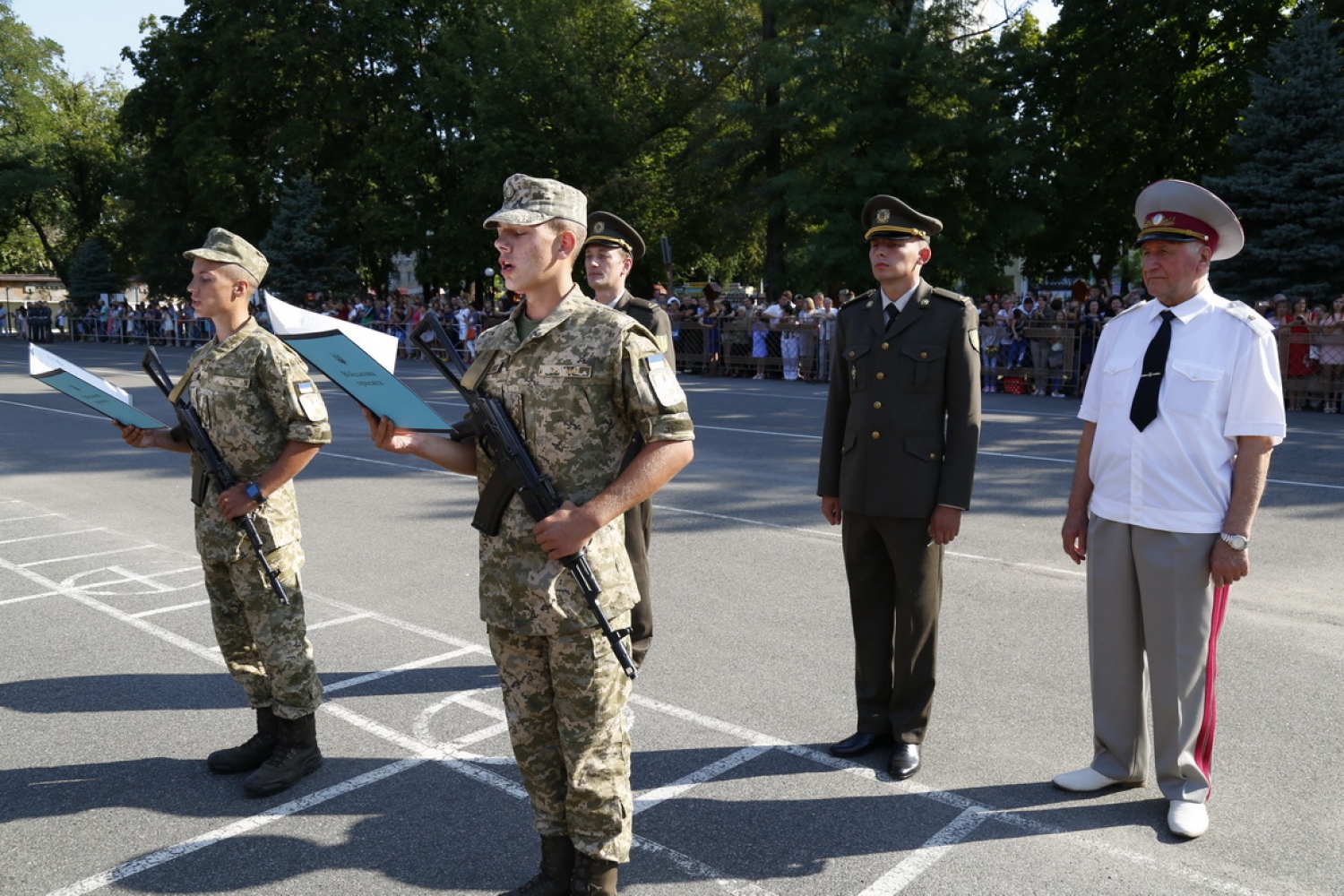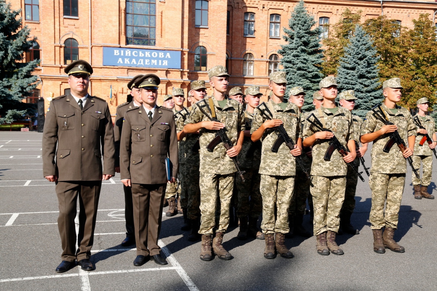 Около 500 первокурсников Военной академии Одессы торжественно приняли присягу на верность украинскому народу. Как сообщает пресс-служба Минобороны, среди нынешнего набора в военный вуз - более 260 военнослужащих-контрактников, почти половина из которых уже получила опыт в зоне АТО. Также ряды курсантов пополнили 98 юношей, окончивших лицеи с усиленной военно-физической подготовкой. Торжественный ритуал принятия присяги традиционно прошел на плацу военного вуза. Началось мероприятие с выноса боевого знамени академии и приветственного выступления начальника академии, генерал-майора Олега Гуляка. Он поздравил курсантов с знаковым событием в их жизни, а личный состав академии — с молодым пополнением курсантских рядов. После проведения ритуала первокурсников поздравили родные и близкие, а также представители воинских частей и учреждений Одесского гарнизона, органов власти и ветеранских организаций. СМЕРТЬ РОСІЙСЬКИМ ОКУПАНТАМ! Помітили помилку? Виділяйте слова з помилкою та натискайте control-enter |