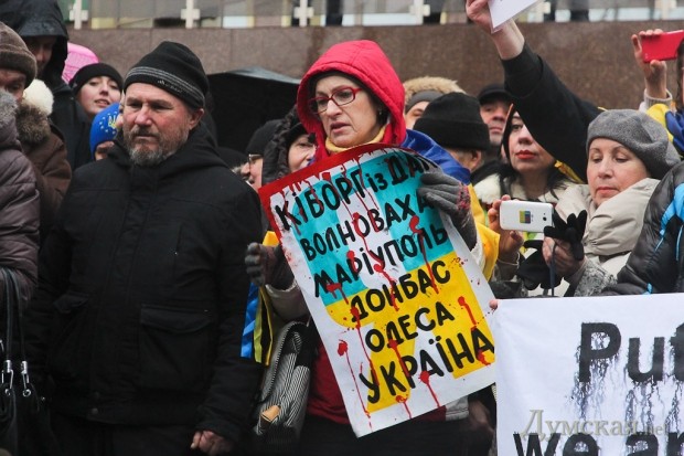 «Мы против войны в Украине. Я пришла сюда, чтобы сказать, что я не поддерживаю фашистскую политику Путина, у него руки в крови», — говорит гражданка России Наталья, которая вот уже 7 лет живет в Одессе .