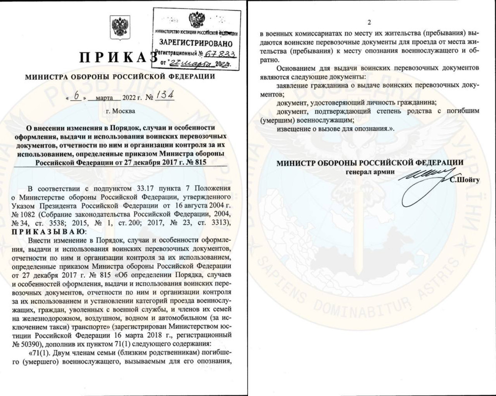 Как сообщает Главное управление разведки Минобороны Украины, соответствующий приказ подписал министр обороны нацистской россии сергей шойгу.