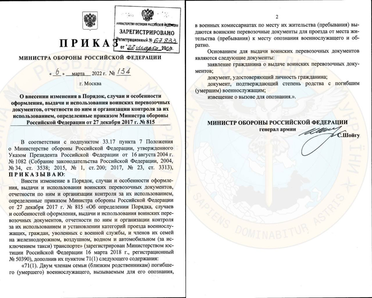 Акция от шойгу: родственникам погибших оккупантов разрешили бесплатно приехать в Украину на опознание (документ)
