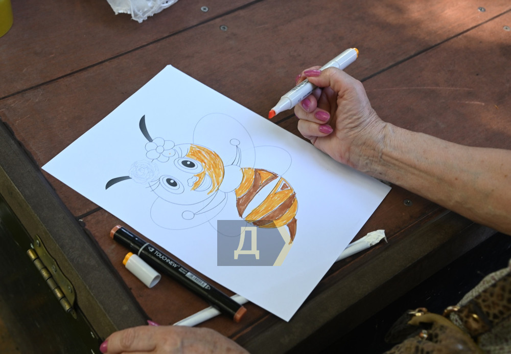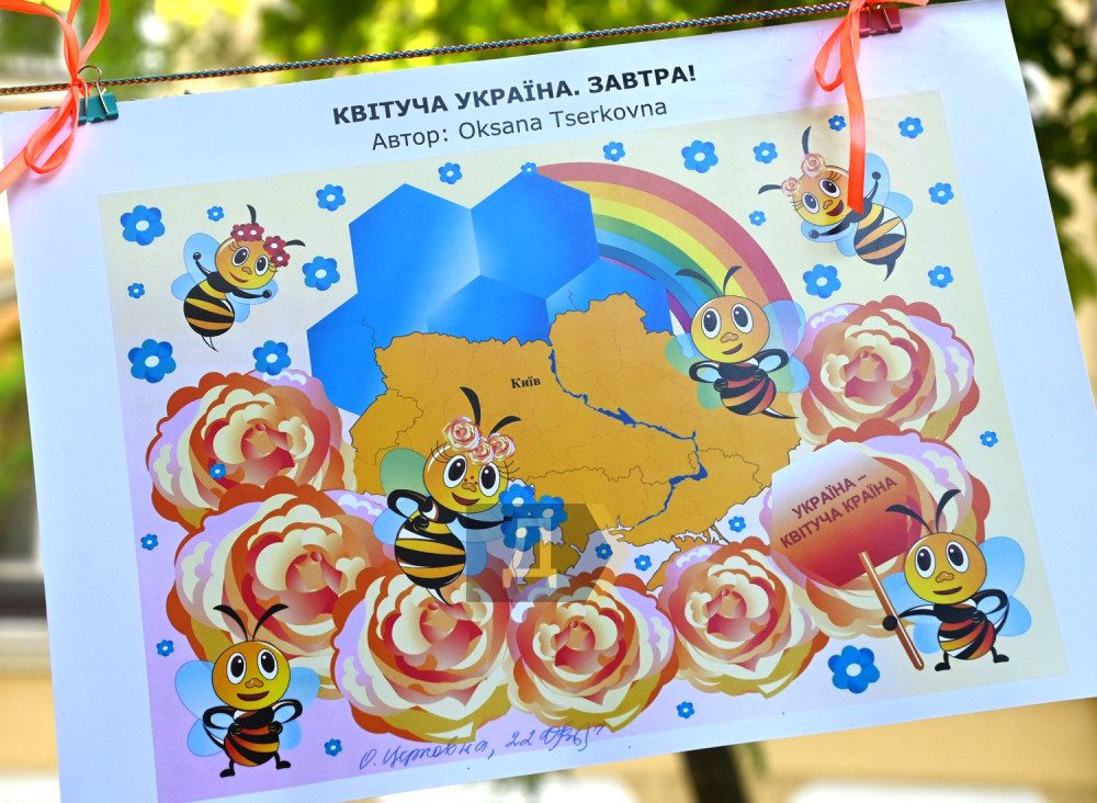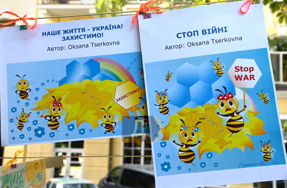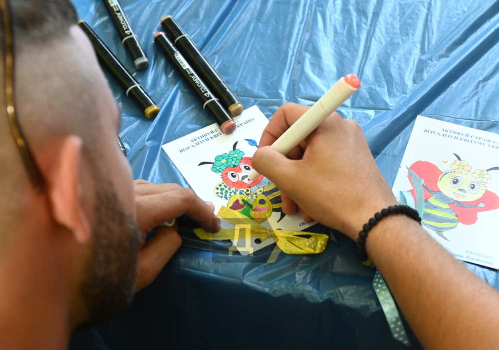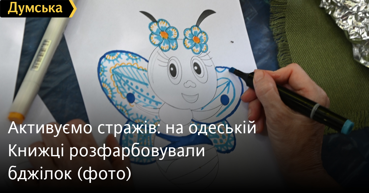 Художниця Оксана Церковна придумала на початку війни оригінальну ідею: створити розфарбовки із зображенням бджілок-стражів України. Бджілки працелюбні, переживають за свій вулик та вимагають припинити війну.