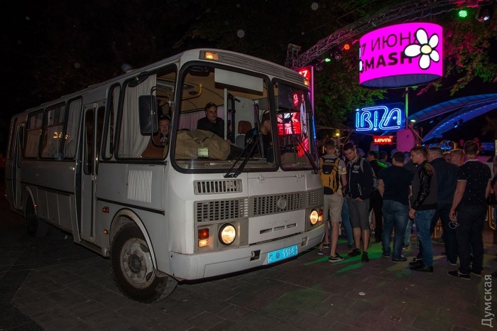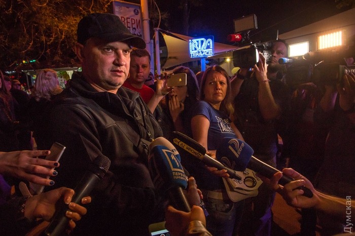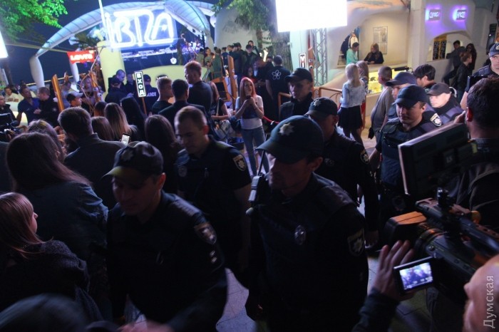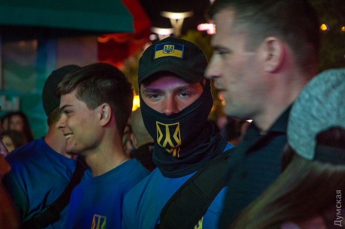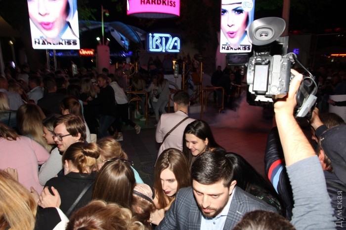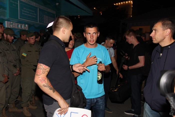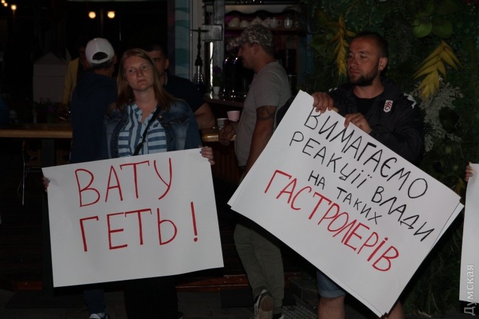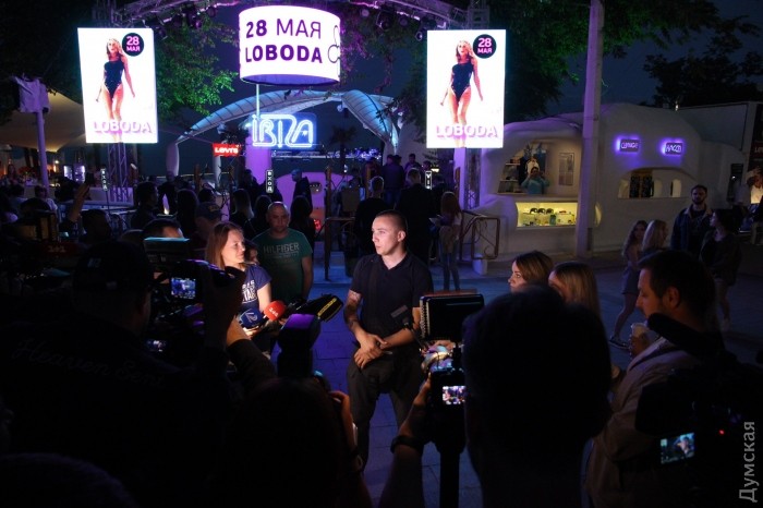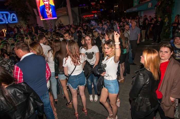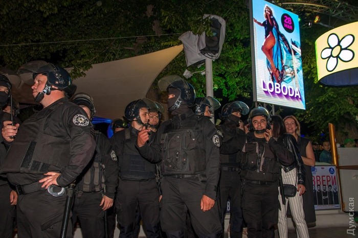Активисты ряда патриотических организаций митингуют у ночного клуба «Ибица» в Аркадии, где вот-вот начнется концерт певицы Светланы Лободы.