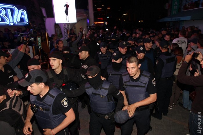 По информации советника начальника ГУНП Руслана Форостяка, полиция составила всего один протокол по 173 статье КУоАП — «мелкое хулиганство». Задержанных нет.