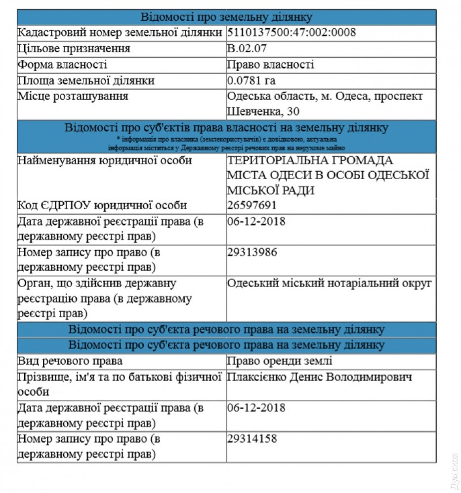 Мы запросили информацию об этом человеке в Госгеокадастре и выяснили, что строить в зеленой зоне собирается известный нашим читателям Денис Плаксиенко — «активист», руководитель общественного формирования по охране общественного порядка «Одесская Самооборона».