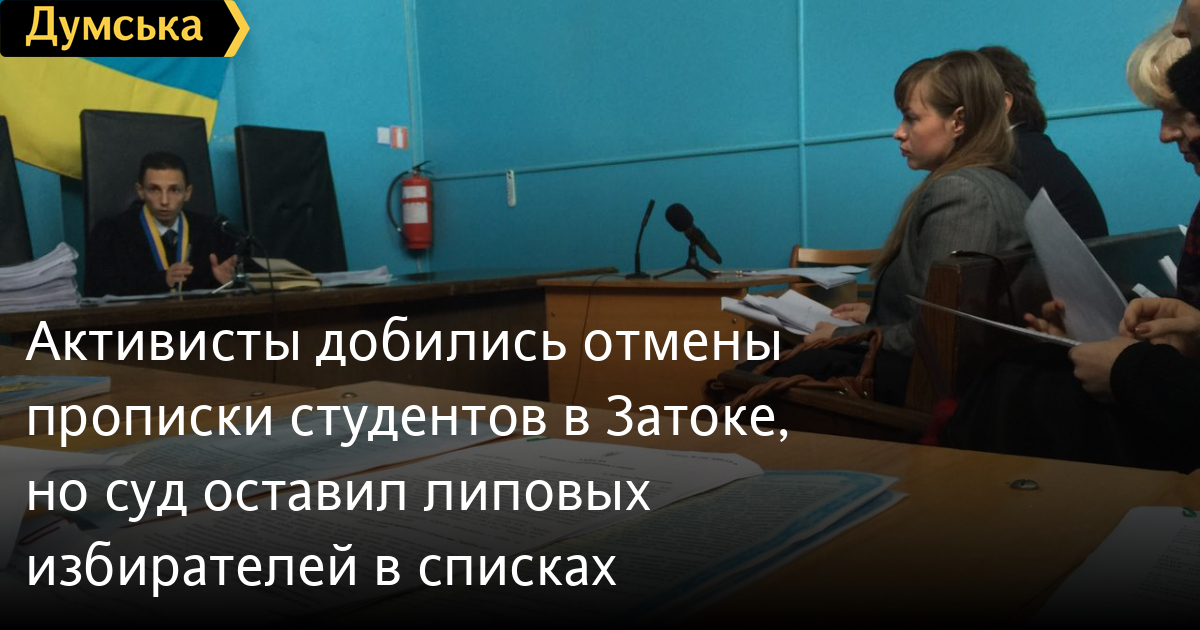 Активисты добились отмены прописки студентов в Затоке, но суд оставил «липовых» избирателей в спискахАктивисты общественной организации «Благополучие Затоки» и представители правового холдинга «Привилегия», которые борются за проведение честных и прозрачных выборов в поселке Затока, совместными усилиями добились отмены прописки студентов, которых зарегистрировали на базе отдыха «Фемида». Именно благодаря активистам этих организаций информация о готовящихся нарушениях получила широкую огласку. Кроме этого члены «Благополучие Затоки» обратились с иском в административный суд о снятии регистрации с незаконно прописанных, а также подали всю доказательную базу в Миграционную службу Украины. Первая победа есть: согласно решению Миграционной службы Украины в Белгород-Днестровском районе уже отменена регистрация 294 студентов, проживавших в «Фемиде», а также еще 40 человек, массово прописавшихся по этому адресу. Но на этом бой не закончен, утверждают активисты — палки в колеса общественникам вставляют представители фемиды, которые, по сути, должны бороться за чистоту права. Так, в ночь на 23 октября судья Белгород-Днестровского горрайонного суда Виталий Мишко своим вердиктом разрешил 700 гражданам, прописанным в пгт Затока, голосовать на местных выборах. Такое решение он вынес по итогам более чем 12-часового слушания дела по коллективному иску жителей Затоки об уточнении списка избирателей в поселке. Судья проигнорировал явные доказательства того факта, что указанные лица никогда не заселялись по указанным адресам и, следовательно, ни дня не проживали в смт Затока, — отметил партнер Адвокатского объединения «Привилегия» адвокат Дмитрий Ткаченко. — В частности, не приняты во внимание многочисленные акты проверок, которые составлялись комиссией в составе члена исполкома пгт Затока, правоохранительных органов, общественников. Так же суд не придал значения тому факту, что все эти люди получили отметку в паспортах за несколько месяцев до выборов. По словам Ткаченко, судья не принял во внимание показания представителя Белгород-Днестровской прокуратуры: реагируя на обращение жителей Затоки, ведомство провело проверку фактов массовой прописки. В результате было возбуждено три уголовных дела, в том числе за подкуп избирателей. Свидетели по этим делам подтвердили, что половину денег они получили за регистрацию, а остаток им обещали после голосования. Представитель прокуратуры также довел до сведения суда результаты проверки по адресам массовой прописки. Ни по одному из 14 проверенных мест их «обитателей» не застали. В большинстве случаев там вообще никого не оказалось. Хотя, по факту регистрации, должны были находиться 30-40 и более человек. Еще один примечательный факт, о котором стало известно в ходе судебного слушания: выяснилось, что председатель участковой избирательной комиссии Виктор Попа проживает в квартире, где зарегистрировано 40 человек. «На вопрос представителя истца о том, видел ли он когда-нибудь своих «соседей» и как ему вообще удается в такой тесноте справлять естественные нужды, глава комиссии вразумительного ответа не дал», — говорит Ткаченко. В итоге имеющуюся обширную доказательную базу судья Мишко оставил без внимания и вынес решение не вносить изменения в избирательный список. В то же время активи