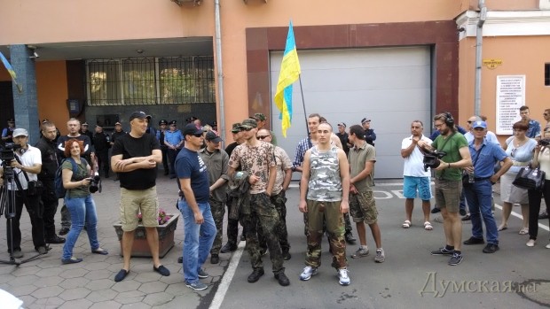 Как передает корреспондент «Думской», в настоящее время у здания собрались несколько десятков протестующих. Вход охраняют милиционеры. Активисты установили у здания колонки и включили музыку. Насколько известно протестующим от адвоката задержанного, сейчас в горУВД изучают вчерашнее записи камер видеонаблюдения из Киевского районного суда.