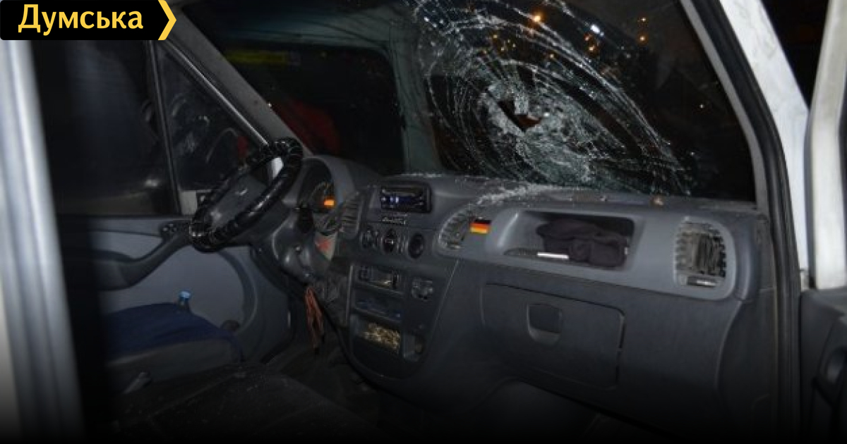 Почему то поврежденными оказались лобовые стекла, а не весь передок, в смысле и капот моторного отсека. И что это за добрые хулиганы или политики, которые бросили по одному камню по лобовому стеклу обоих автобусов, а вдругие места автобусов не попали?