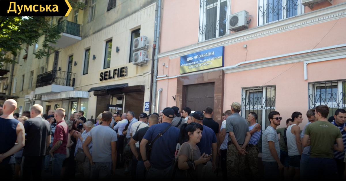 «Наш побратим Сябр фотографировал под департаментом, как начальник одесского управления ДВБ НП Украины Дмитрий Мартыненок, выходил из своего Porsche Cayenne (согласно декларации, Дмитрий Мартыненок передвигается на «Инфинити FX 35» 2006 года выпуска, — Ред.), и в этот момент его вместе с другом затащили внутрь сотрудники внутренней безопасности и там прессовали», — утверждает Гордиенко. К протестующим вышел прикомандированный к одесскому управлению сотрудник департамента ВБ Нацполиции Александр Устименко. Майор полиции заверил собравшихся, что сейчас по факту случившегося проводится служебное расследование. Марк Гордиенко и глава одесской ячейки «Автомайдана» Евгений Резвушкин о чем-то поговорили с киевским полицейским, после чего акция протеста свернулась. Отметим, что изначально общественники планировали закидать здание УВБ яйцами.