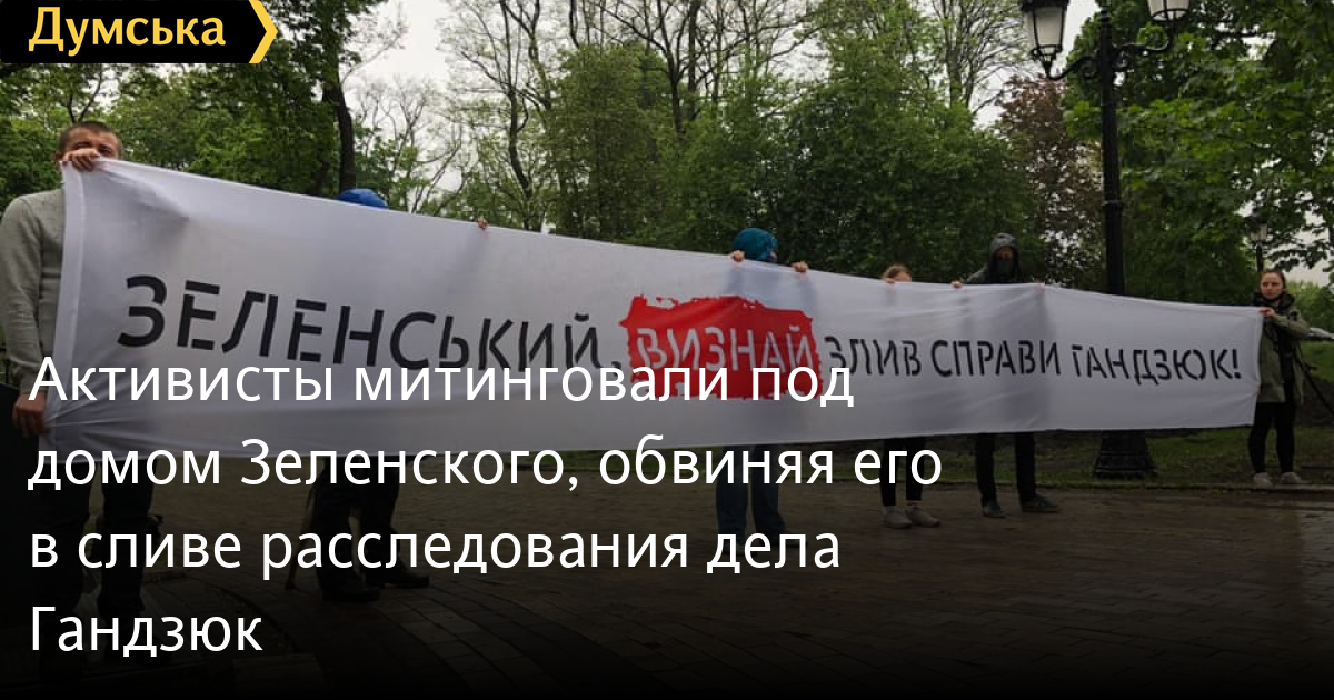 Собравшиеся включали аудиозаписи слов президента и держали плакаты с обвинениями Зеленского в сливе дела.