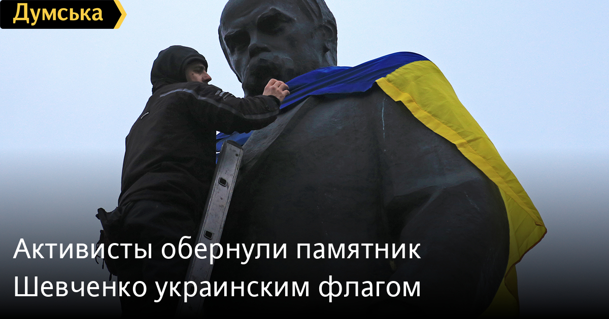 Активисты обернули памятник Шевченко украинским флагом