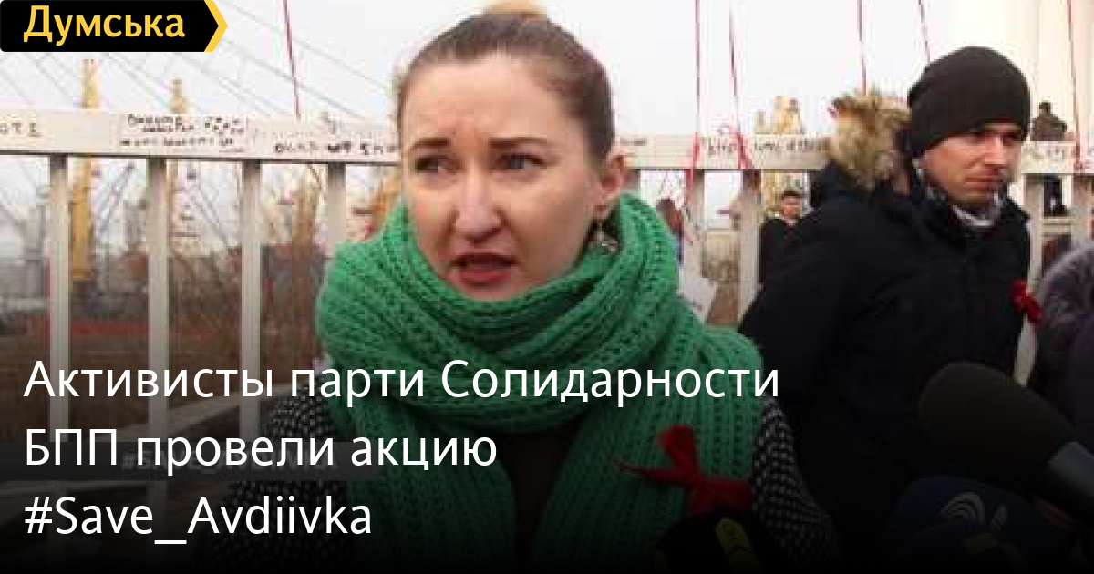 Активисты одесской организации партии «Солидарность» Блок Петра Порошенко и неравнодушные горожане провели акцию SaveAvdiivka — чтобы напомнить общественности о ситуации в украинском городе, который несколько суток находится под огнем противника. СМЕРТЬ РОСІЙСЬКИМ ОКУПАНТАМ! Помітили помилку? Виділяйте слова з помилкою та натискайте control-enter Думская ТВ. Сюжеты: