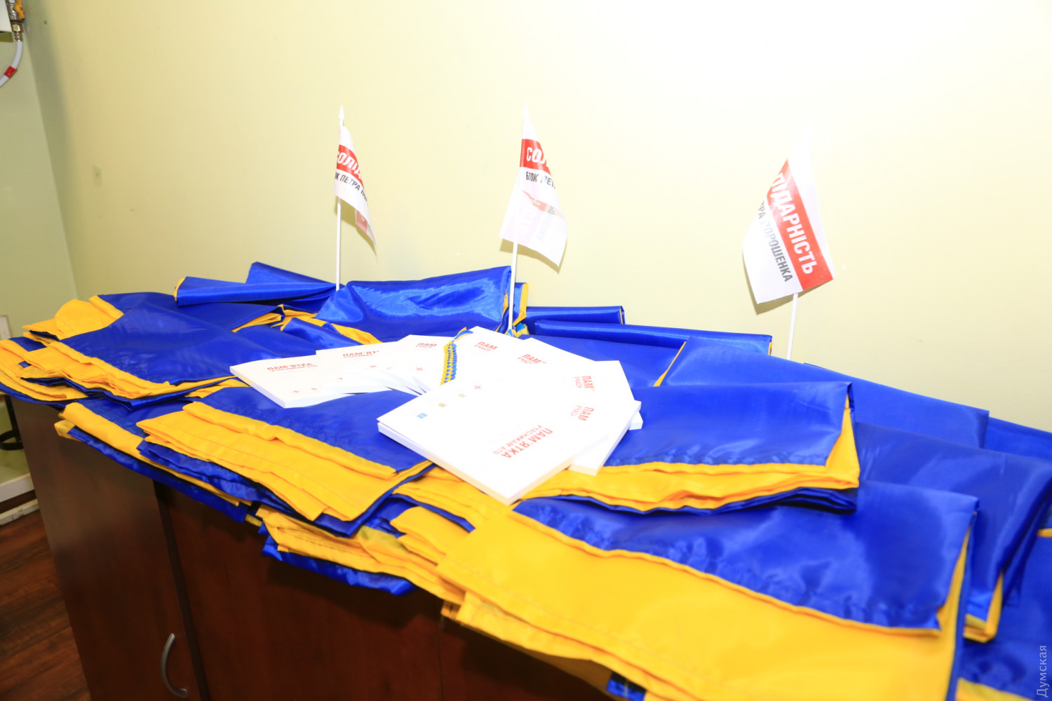 Вчера активисты партии БПП «Солидарность» отправили в зону боевых действий на восток Украины очередную посылку. Военнослужащие получат более сотни украинских флагов и около 500 экземпляров брошюры «Памятка участникам АТО. Права, обязанности и гарантии социальной защиты».