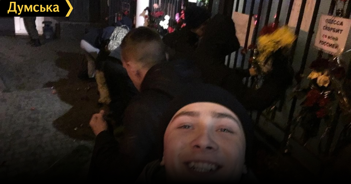 Руководитель одесской ячейки «Правого сектора» вместе с соратниками пришли сегодня под стены генконсульства Российской Федерации, чтобы навести порядок.