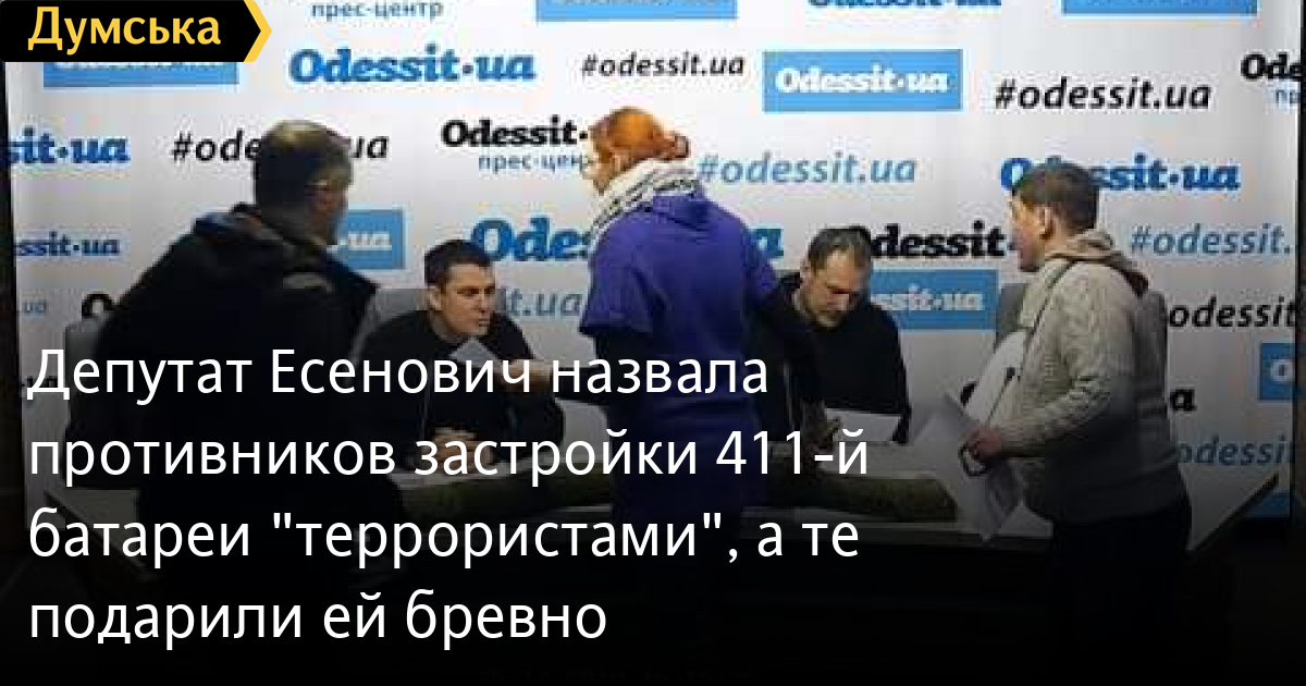 На фотографии в пионерских галстуках и пилотках улыбаются депутаты Одесского горсовета Андрей Терновский, Олег Брындак, Сергей Страшный и Сергей Шеремет, а по центру стоит Ирина Куценко-Есенович.