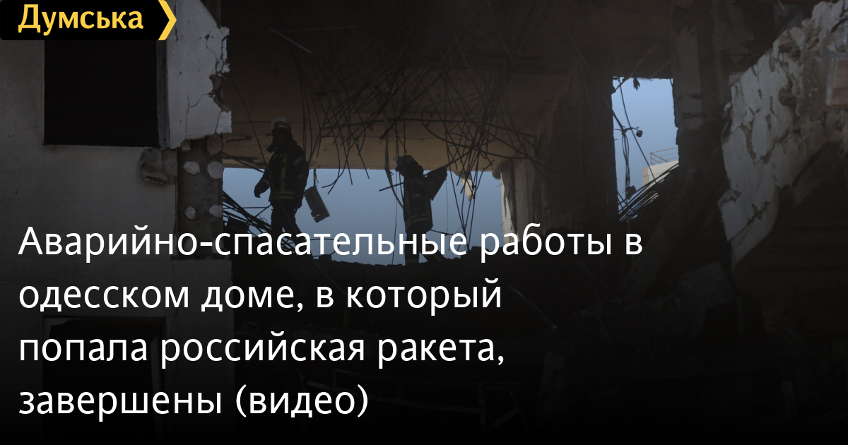 Аварийно-спасательные работы в многоэтажном доме в Киевском районе Одессы, который пострадал в результате ракетного обстрела со стороны российских нацистов, были завершены в 18:55 воскресенья.