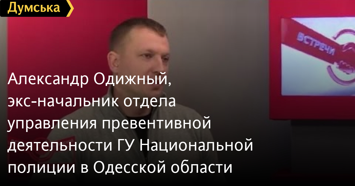 Александр Одижный, экс-начальник отдела управления превентивной деятельности ГУ Национальной полиции в Одесской областиСМЕРТЬ РОССИЙСКИМ ОККУПАНТАМ! Заметили ошибку? Выделяйте слова с ошибкой и нажимайте control-enter Думская ТВ. Встречи на Думской: