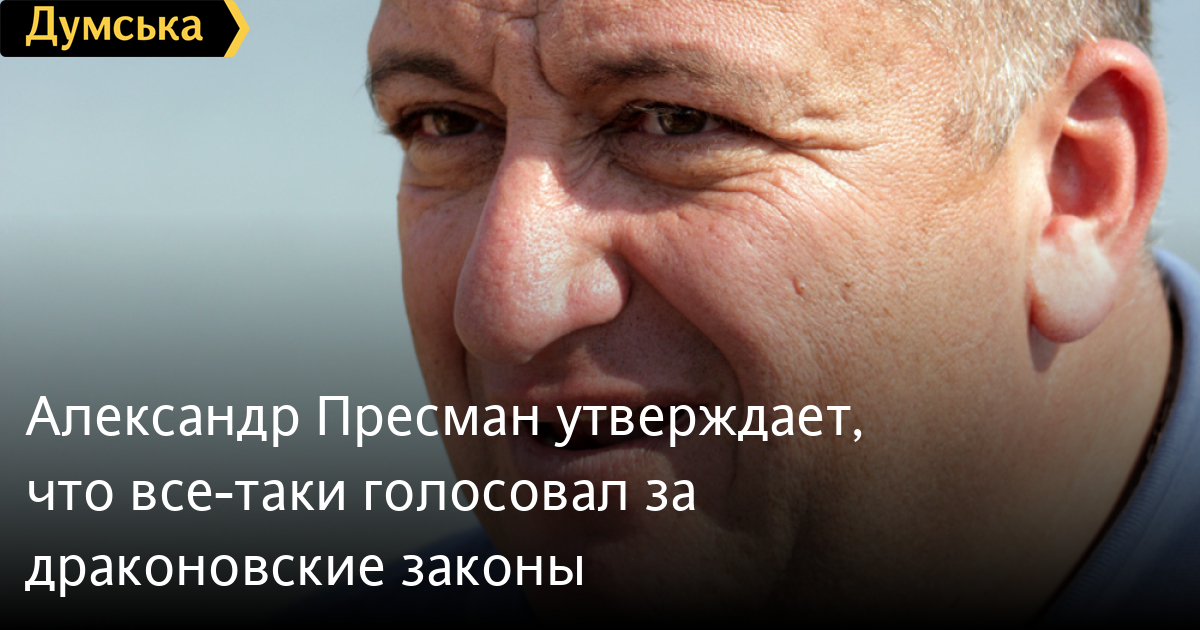 Нардеп-регионал Александр Пресман опроверг имеющуюся информацию и заверил корреспондента «Думской», что голосовал в Верховной Раде за принятые 16 января законы, прозванные «драконовскими».