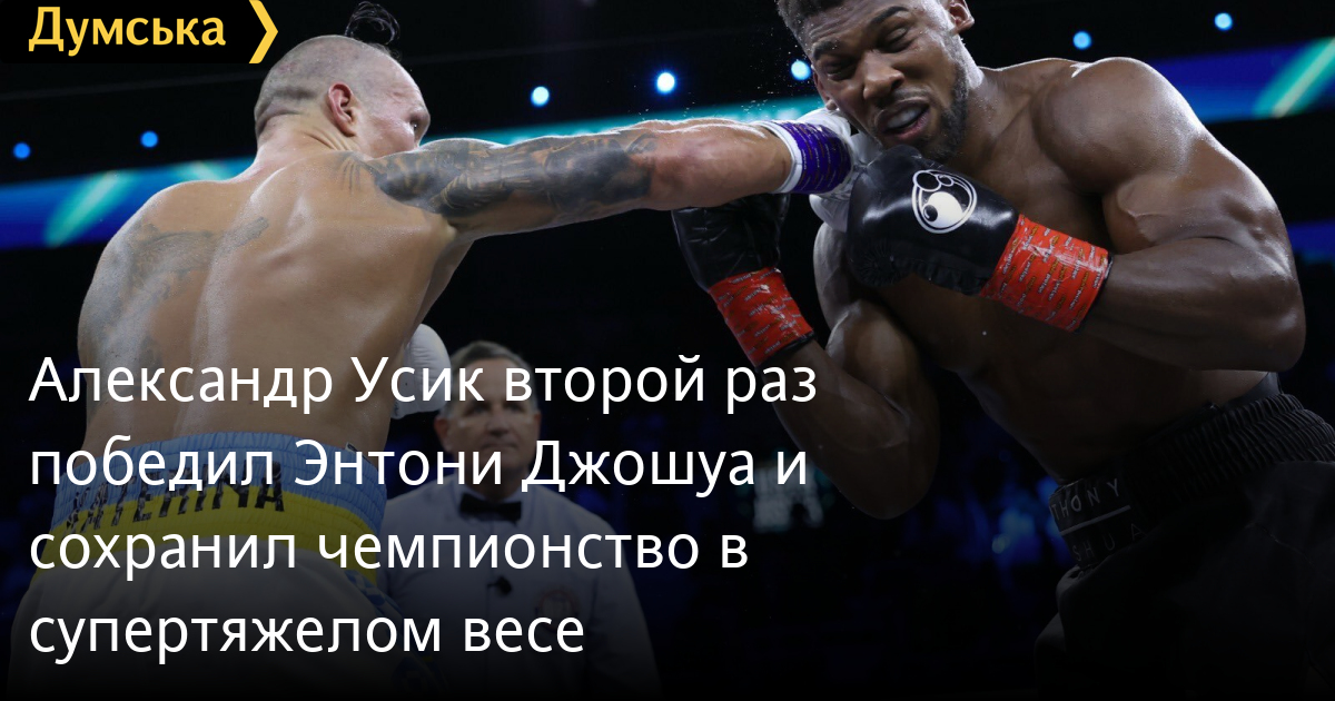 Олександр Усик вдруге переміг Ентоні Джошуа і зберіг чемпіонство у надважкій вазіУкраїнський боксер, чемпіон світу у суперважкій вазі у категоріях WBA, WBO, IBF та IBO знову переміг попереднього володаря цих поясів Ентоні Джошуа. Усик здобув перемогу в Джідді в Саудівській Аравії, вистояв на рингу 12 раундів. Оскільки за цей час жодного із суперників не було нокаутовано, перемогу визначали за допомогою суддівських записок. Дев'ятий та десятий раунди були важкими для Усика, українець отримав кілька серій ударів по корпусу та ледве стримував натиск суперника. У десятому раунді він зміг перехопити ініціативу. Перемогу прокоментував президент України Володимир Зеленський. «Захист титулу чемпіона світу – символ того, що всі, хто козацького роду, свого не віддадуть, боротимуться за це та обов'язково переможуть!» — зазначив він. Нагадаємо, попереднього разу Усик переміг Джошуа у вересні минулого року. Помітили помилку? Виділяйте слова з помилкою та натискайте control-enter |