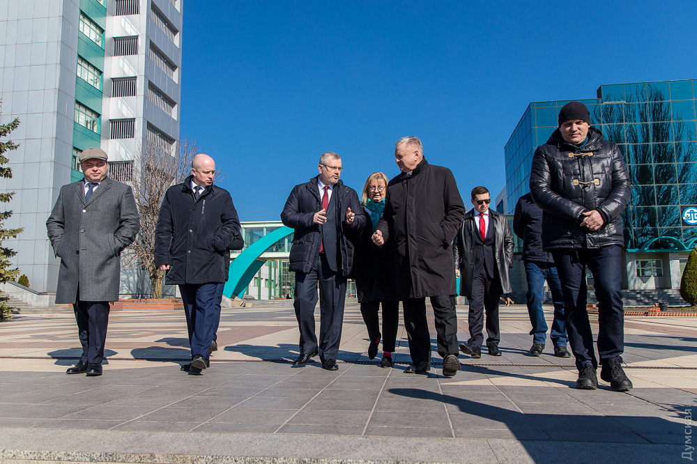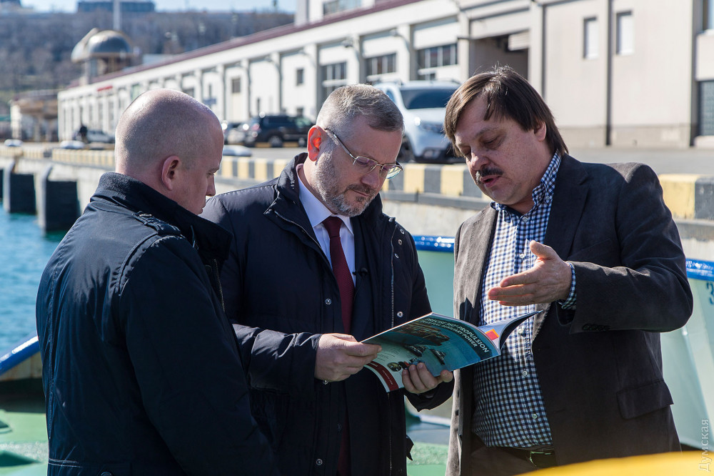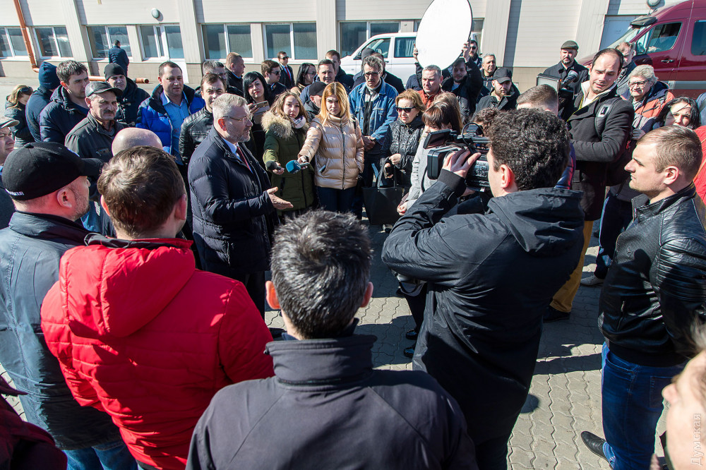 Александр Вилкул не ограничился только выступлением на форуме. Кандидат в президенты ознакомился с работой остановленного Одесского припортового завода и встретился с представителями морской отрасли — судостроителями, таможенными брокерами, портовиками.