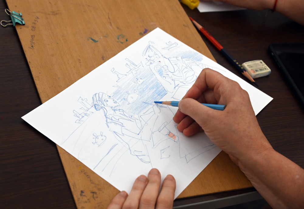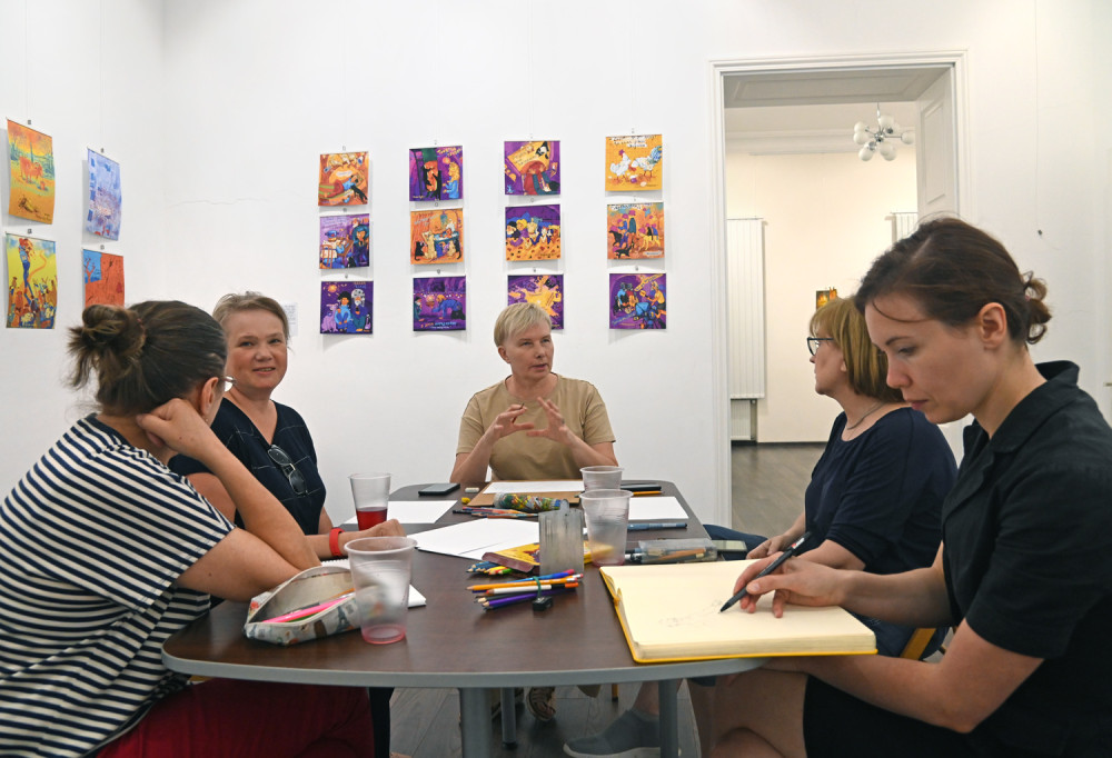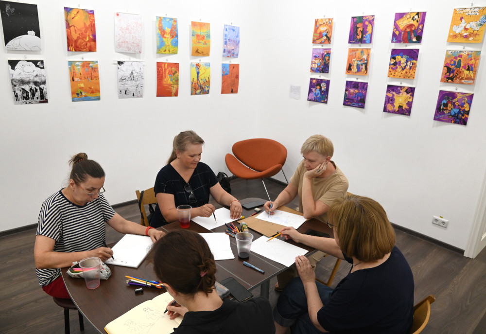 Посетить ее можно по субботам и воскресеньям, с 12 до 19:00. А в день открытия автор провела сеанс совместного творчества с первыми посетителями. Среди сюжетов, действующими лицами которых стали не только члены семьи художницы, но и Алиса, Безумный Шляпник, Синяя Гусеница и другие герои культовой сказки Льюиса Кэрролла, творилось легко. Всех участников тоже потянуло в сказочный мир, только получался он тревожным…